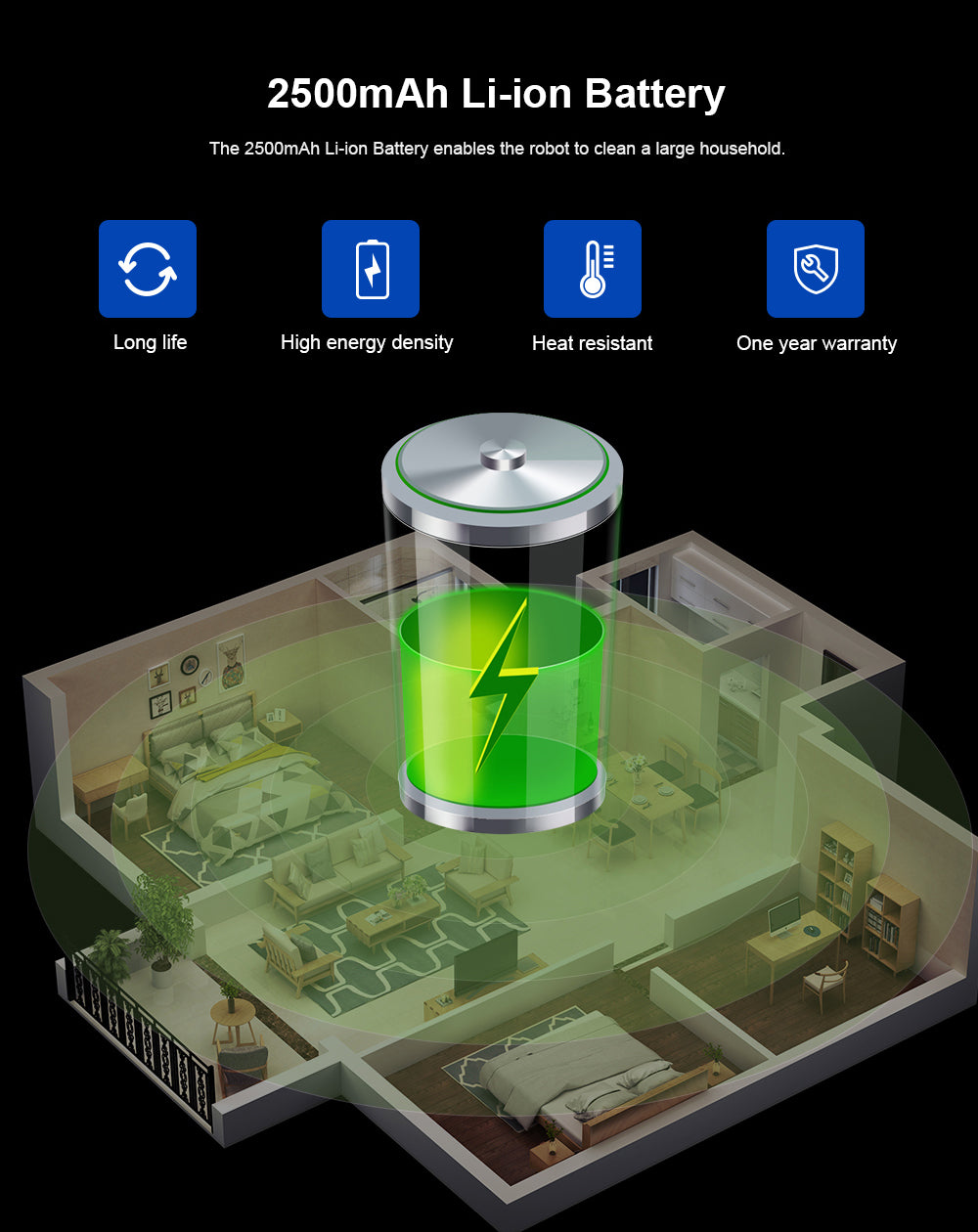 Battery capacity: 2500mAH Lithium-ion